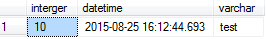 - select @x 'interger',@y 'datetime',@z 'varchar'