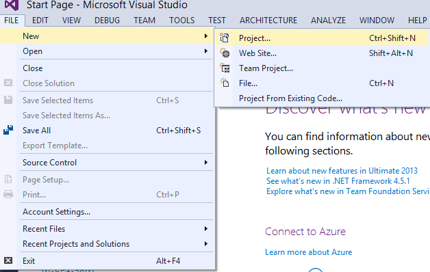 Step 2: Now for creating a website, click on the File, go to New and click on the Project.