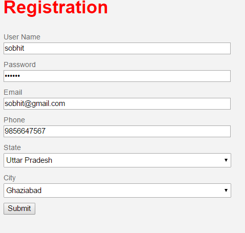 After debugging in the application we show that registration class object have values as in the following screenshot: