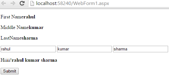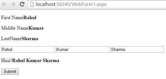 Now we will write the complete code for Knockout.js. By default I have taken the value Rahul kumar Sharma.