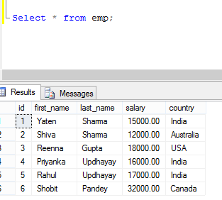 - 2, 'Shiva', 'Sharma', 12000, 'Australia'