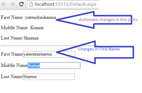 Now if we change in the first name in the text box then the upper part of the window changes automatically.