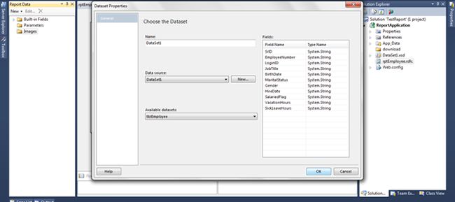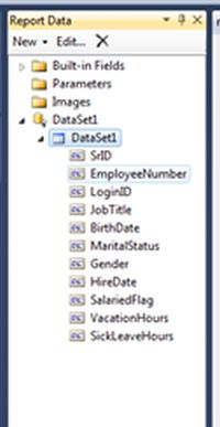 In the Report Data click and new button and select DataSet. And then select the appropriate DataSet. After selecting the DataSet, the columns appear in the right tab.