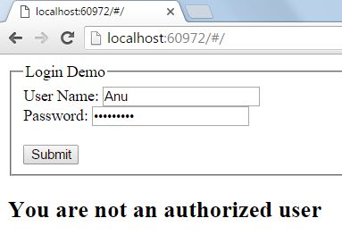 On this page I created two textboxes and a button, which will help to identify user authenticity. Apart from that I have created a div in which some message is written for non-authentic and non-authorized users, and one more div where some links and a container div is created.
