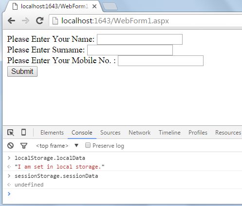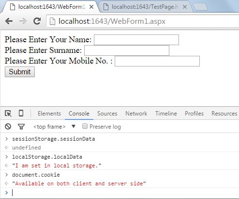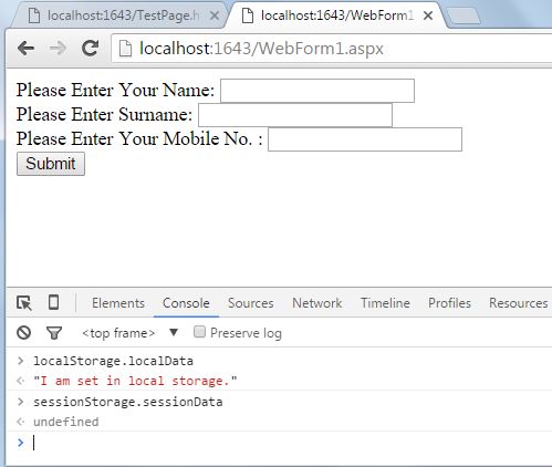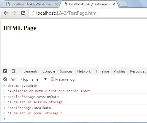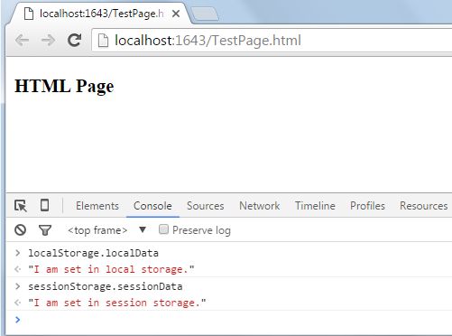 I just created a .NET application in which an HTML5 page is added, and on that page script tag is added so that we can assign some values under the two storage.