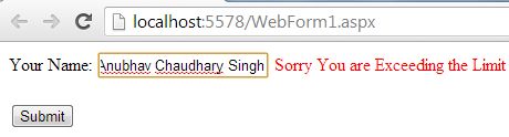 But as I make changes in this initial value and provide a name consisting of more letters then you will see the error message shown that your have exceeded the limit.