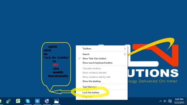 After installation of Windows 10 Operating System, by default you can see the Taskbar of Windows 10 at button position . Sometimes user wants to Customize the Taskbar of Windows 10.