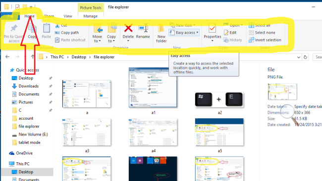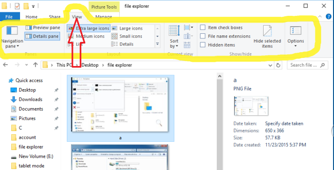 Microsoft added a new "File Explorer" to overcome the problem to use all file operations in old "File Explorer" window. It means all the file operations of "Windows 7" file explorer are visible in new file explorer window. So Microsoft added new look and feel explorer called Windows 10 "File Explorer" with advanced functionality that plays an important role in user friendly environment. Follows some steps to understand the new functionality Windows 10 "File Explorer".