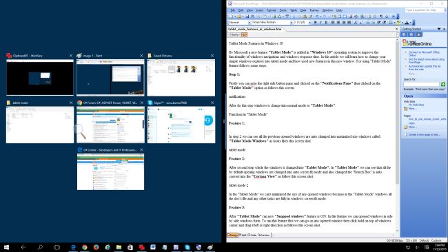 In step 2, we can see all the previously opened windows auto changed into maximized size windows called "Tablet Mode Windows" as in the following screenshot,