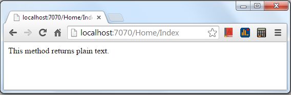 2. ContentResult: It is used to return a user-defined content type (text, xml). We can return a simple string to the user using the Content() method. Consider the following code: