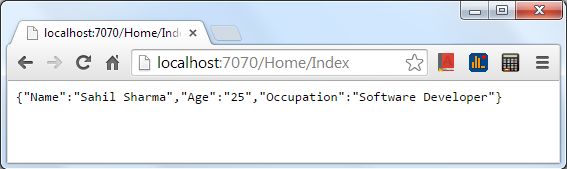 3. JsonResult: We can use this class to return a JavaScript Object Notation (JSON) object to the user. We need to use the Json() helper method to return JSON. Consider the following code: