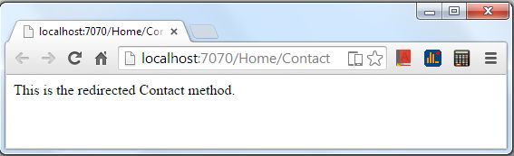 Here, I'm using the Contact() action method as the redirected method to be displayed whenever a request comes to Index() method.