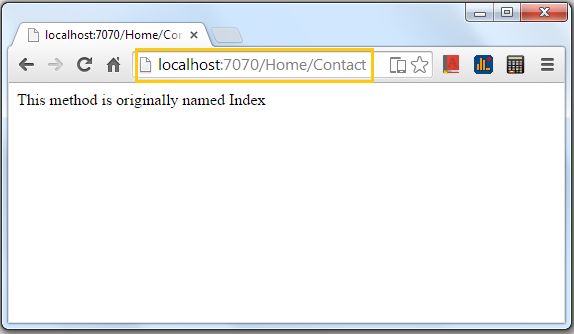 But there may be other situations. What if there is a requirement that demands the public methods of a controller class not to be treat as action methods. Can we do that as well? The answer is Yes, we can. There is an attribute called NonAction that indicates the public method should not be treated as an action method. Consider the following code: