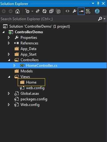 Step 7: Voila, the HomeController is created inside the Controllers folder. An interesting point to be noted is that a folder with the same name of controller is created inside the Views folder. This is because the Controller is responsible for responding to incoming requests and generally the user wants HTML pages to be rendered down to the browser. To respond with HTML pages to the user, we make use of views.