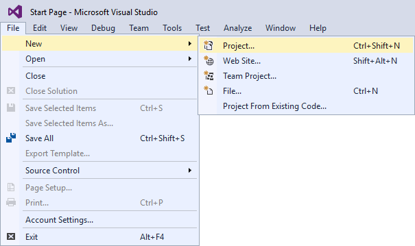 Step 1: Once Visual Studio Community 2015 and select FILE, then New, Project… from the Menu.