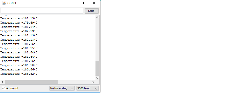 The following output of the room temperature is shown in the serial monitor screenshots below,