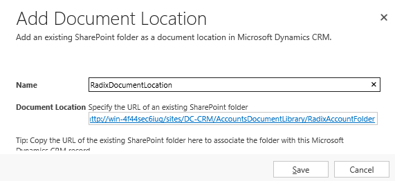 Step 8: You can add document location for this entity assuming the location is created and the appropriate permissions are set on SharePoint.
