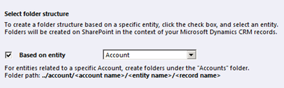 Step 10: In case you do not want to manage the folder structure on your own and let CRM make it for you, if the CRM List Component is installed correctly, you get an option for creating a folder structure based on the entities.