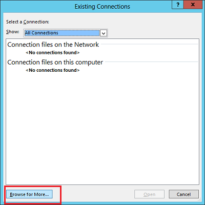 Start Excel then select "New File" --> "Data" --> qConnections --> "Add" --> then "Browse for More" as shown below.
