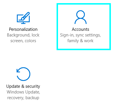 Step 2: Clicking on settings opens a new window with many options. Click on Accounts.