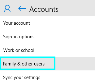 Step 3: On the left side bar you can see many options, click on Family & other Users.