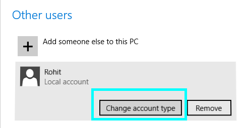Step 7: After creating a new user you can change the user account type, for this click Change account type.