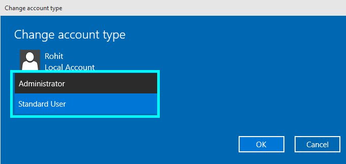 Windows 10 provides a lot of new features, changing the user account type of a friend or family is one of them. Using it you can give them more or less control over the computer. By the help of these features you could protect your system from other users or can give additional permissions to new user, so they can easily install new software. There are two different account types.