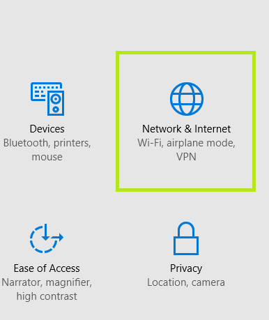 After clicking on the Settings app a new window will open and you need to get into the Network and Internet category.