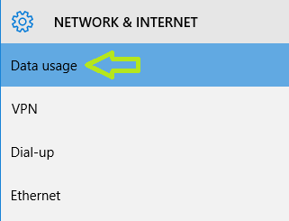 When you click on Network and Internet you will get many options. From your left sidebar click on Data Usage.