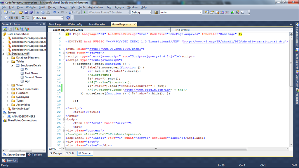 - Okay, I hope I have explained well about the preceding step. Our ultimate purpose is to load a record from a database from jQuery. Just think, how a plugin like jQuery understands SQL Server data. Practically, it is a big no or plain English will be "not possible". We need to be creative here.