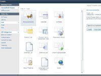 In your SharePoint site, choose site Actions and then choose more options. You can access the create page dialog. You can also access this by clicking on the create button in the "View all site content" option.