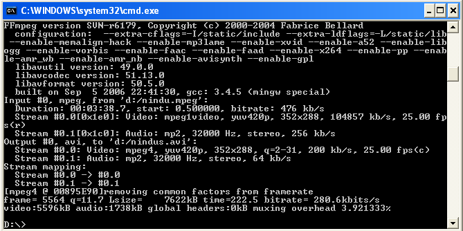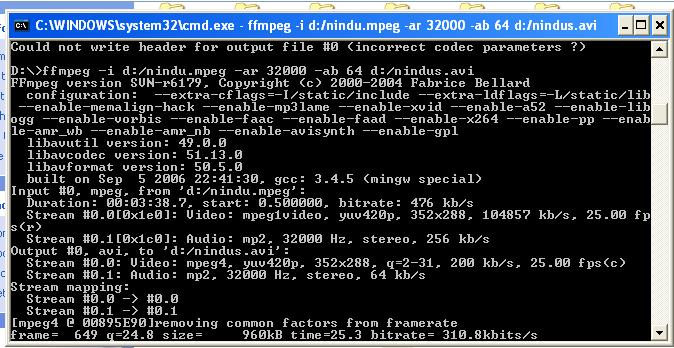 If you want to extract the .exe, download the Zip Files.Real Time Images process in the command prompt when execute in your command prompt manually.Step 1 Convert the the nindu.mpeg file format to nindus.avi format file.