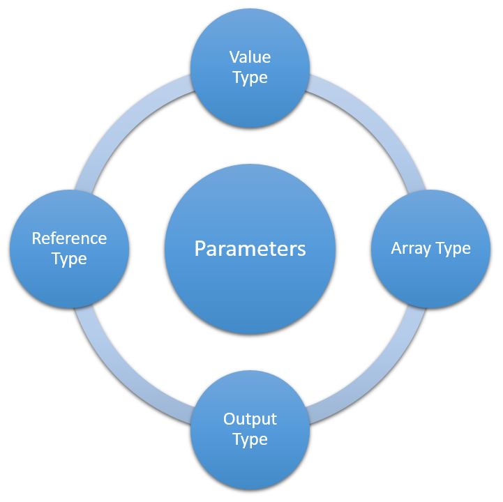 They are the special values that a user has to supply at the time of calling the function in the program, if parameters are defined for that function as they are optional. The parameters are always defined in the parenthesis following the function name. It needs a data type for the value that the user will supply and the name of parameters can be anything except the reserved keywords of C#.