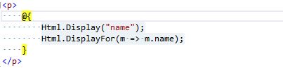 Renders a read-only view of the specified model property and selects an appropriate HTML element based on the property's data type and metadata. DisplayFor() is to point to a model property in the strongly typed view.