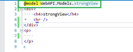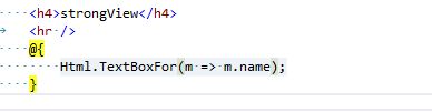 It's pointing to the “strongView” model that we created earlier. Now we are allowed to create a strongly typed HTML helper.