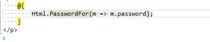 The Password type we can be created using the PasswordFor() extension method. This method will generate a HTML password element and currently it's pointing to the password field of the Model class.