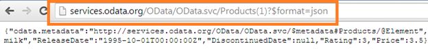 We can request a data type to the Odata service using a “$format” filter. The URL is something like the following.