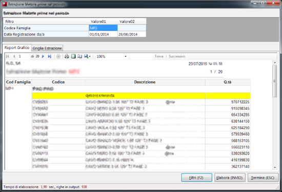 The following screenshot shows a stamp of my finished program (with some obscured data), that relies on a parameter file in which to specify the filters to ask to the user, the query to be executed and so on.