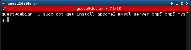 - sudo apt-get install apache2 mysql-server php5 php5-mysql