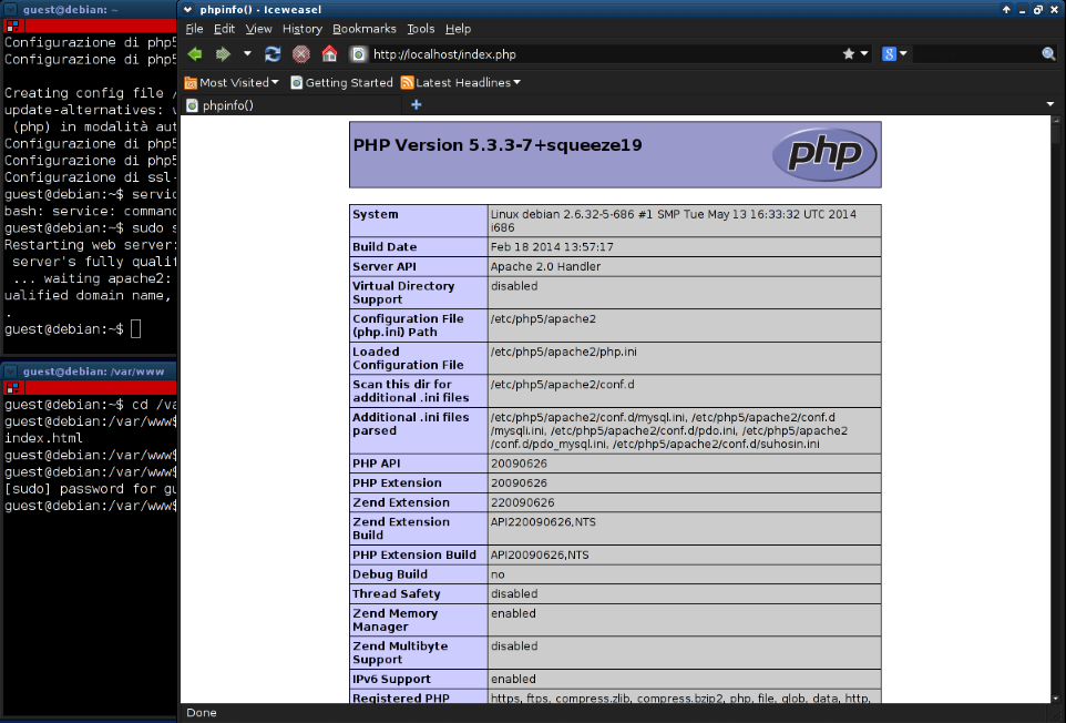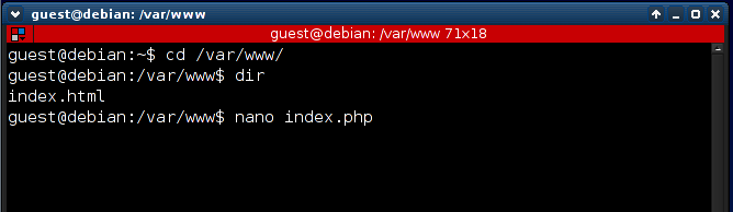 The last thing to do is to verify the PHP configuration, along with the webserver capability to interpret PHP syntax. We can create a PHP file under the /var/www folder that will be web-accessible.