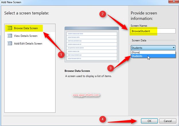 Name the Screen BrowseStudent as shown above.