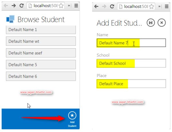 In the beforeShown function, we are setting the default values of the new screen’s Student object.This is how we can set the default values for the new screen.Output