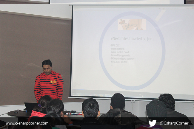 The event was kicked off with the first session taken by Sumit Jolly on ASP.NET Vnext: Part 3.