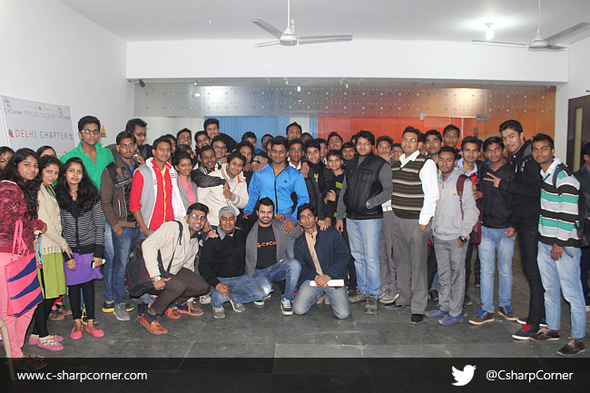 Be in touch with us through our Chapter Page or follow us on Twitter at @CsharpCorner to get an invitation for future C# Corner Events. You can also catch up with us on Facebook at https://www.facebook.com/CsharpCorner and on Google+ too at https://plus.google.com/+CsharpCorner/.