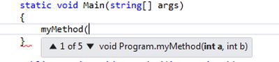 - Console.WriteLine("b={0} , myMethod Version 5 is printed");