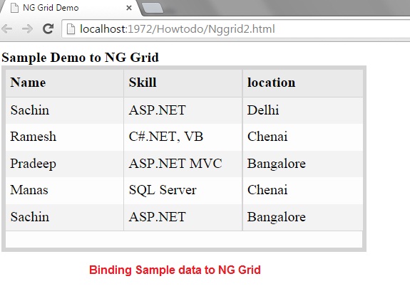 - $scope.Data = [{ Name: "Sachin", Skill: "ASP.NET" ,location:"Delhi"},