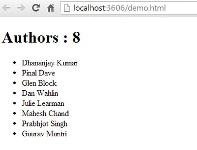 We will get the application rendered as in the following and the authors are shown in HTML using a static template. The following rendered page is pure static HTML page.