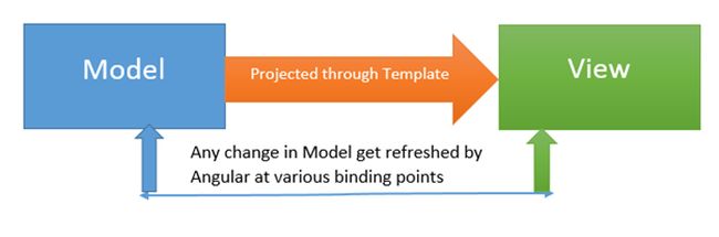 The view and template are created in HTML. We will bind the view with the controller and Angular will project data from the model on the view. On the view we are using various Angular directives.