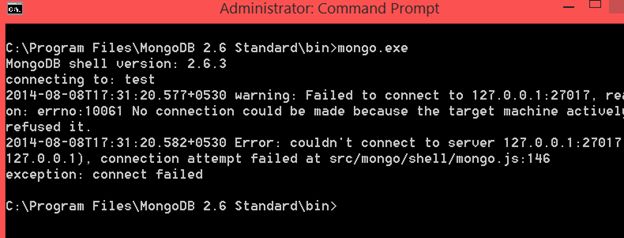 Everyone is loving NoSQL and mainly MongoDB. I thought to start getting my hands dirty on it. So to start with, I downloaded MongoDB for Windows and installed it. So far so good.Next I browsed to the MongoDB folder. To start the server I entered the mongo.exe command. Oops, I encountered the error that no connection could be made to the server. Okay, so to start using mongoDB we first need to start the mongoDB server. That can be done using the command mongod. So I tried starting the mongoDB server using the mongod command. Oops again, I got the following error that clearly says that the dbpath does not exist. So let us proceed and create a folder data\db. We are free to create this folder at any location. However later this folder location should be set in dbpath for mongoDB. Once the data folder has been created we need to set dbpath. That can be done as follows:It will take some time to get this command executed. You will not see an error.The Command prompt should stopped at: Next launch another command prompt and type the command mongo.exe as in the following:Here you see mongoDB has been connected to the database test. To test successful installation, let us insert one record in the test database. To insert, the command is db.test.save(jsonvalue) where test is your database. After doing this procedure mongoDB is installed successfully on your Windows Machine. I hope this article is useful. Thanks for reading.