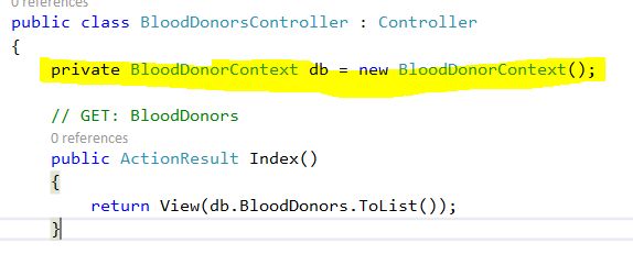 - public DbSet < BloodDonor > BloodDonors{get;set;}